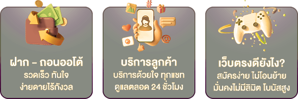 ตอบ : - มีระบบฝาก-ถอนอัตโนมัติที่รวดเร็ว ใช้เวลาไม่เกิน 3 นาที รองรับธนาคารชั้นนำทุกธนาคาร และมีระบบรักษาความปลอดภัยมาตรฐานสากล